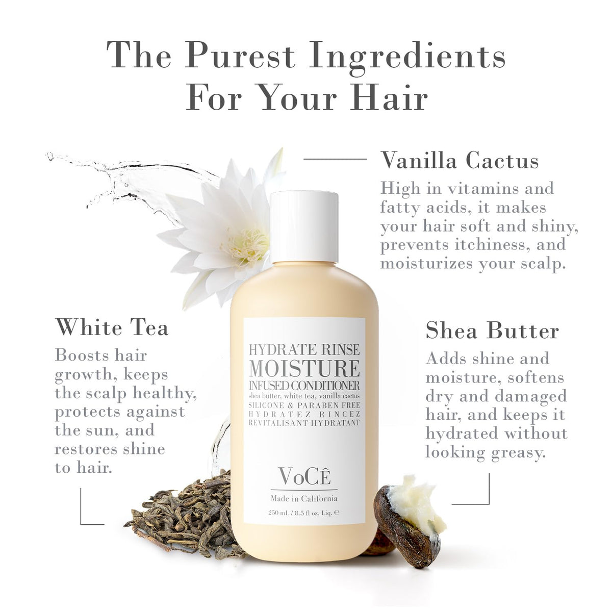VoCÊ Haircare – Natural Hydrating Conditioner - Rinse | Deep Moisturizing, Anti-Frizz, Sulfate-Free, Non-Toxic, Vegan Haircare for Women and Men with Shea Butter, White Tea, Vanilla Cactus (8.5 oz)
