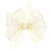 Wee Ones Girls' Organza Double Hair Bow on a WeeStay Clip with Satin Knot Center, Medium, Ecru