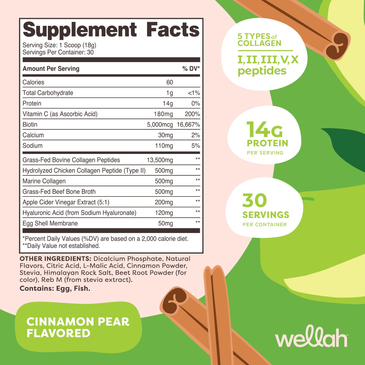 Wellah The Afterglow Multi Collagen Protein + Beauty (30 Servings, Cinnamon Pear) - Hair, Skin, Nail & Joint Support - Non-GMO and Gluten Free