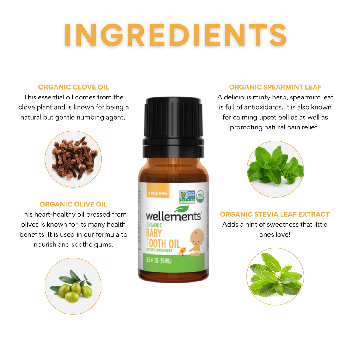 Wellements Baby Tooth Oil is a natural solution to soothe your baby's teething discomfort. This .05 oz oil provides gentle relief for your little one's oral care needs.