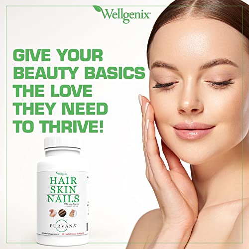 Wellgenix Purvana Hair, Skin, and Nails Vitamin Softgels for High Absorption - Double Strength 2500mcg Biotin, VIT A & B (90 Count) 2 Pack
