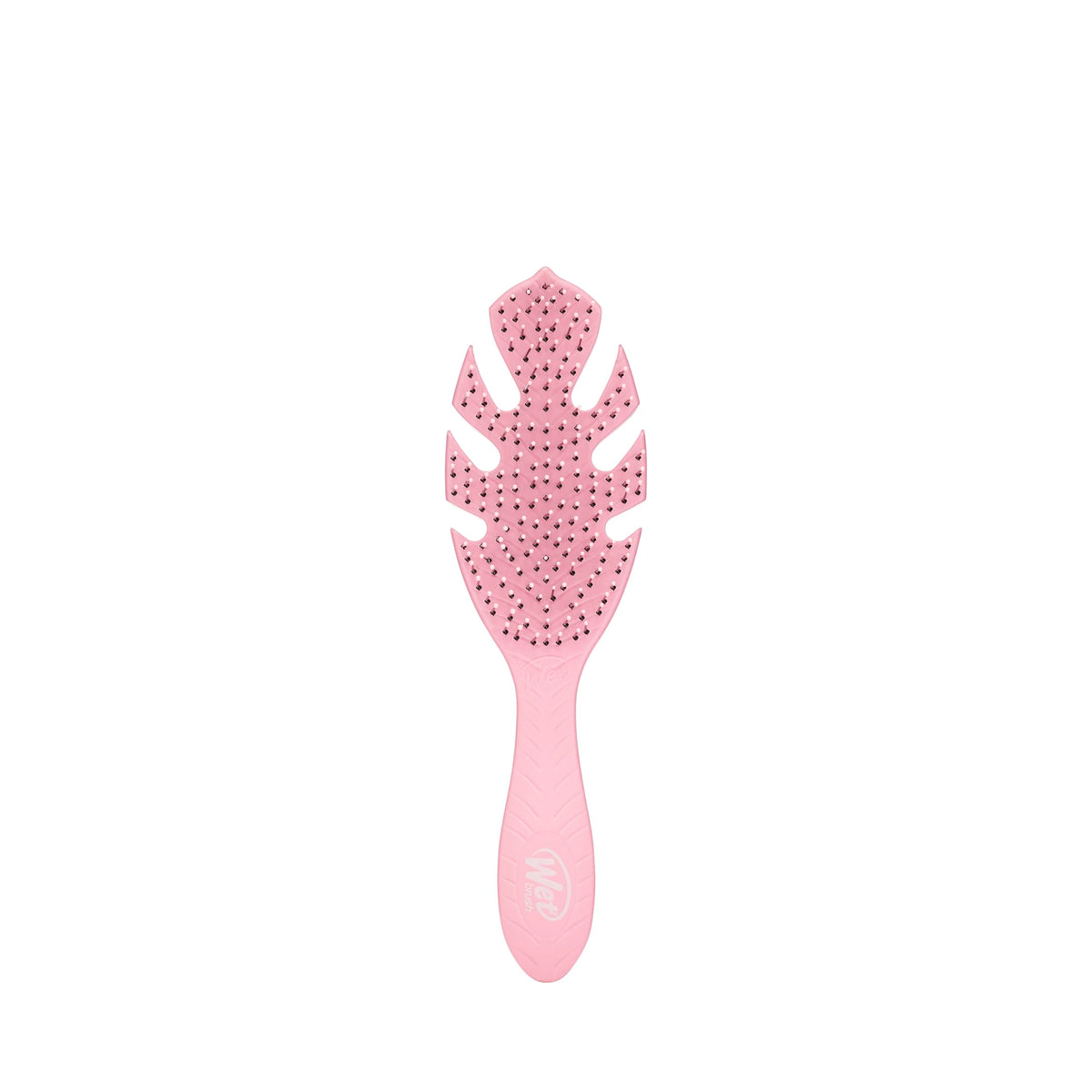 The Wet Brush Go Green Hair Detangler Brush in Pink is designed to gently loosen knots and tangles with its ultra-soft IntelliFlex bristles, minimizing pain, split ends, and breakage.