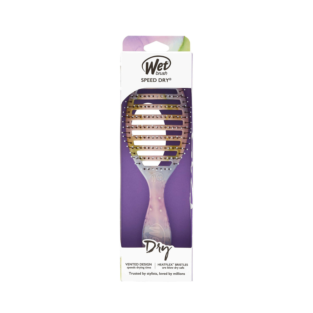 Dry your hair quickly and effortlessly with the Wet Brush Speed Dry Hair Brush in Splatter design. The vented design and ultra-soft HeatFlex bristles make blow-drying safe and easy, managing tangles and unruly hair with ease.