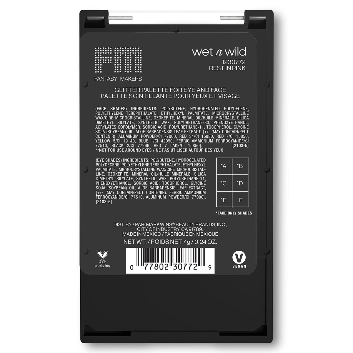 wet n wild Fantasy Makers Glitter Eyeshadow Palette, Long Wearing Shimmering Brilliance, Creamy Texture, 6 Complementary Shades, Cruelty-Free - Rest in Pink