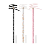 This set includes three eyeliner pencils in matte black, matte white, and light shimmer pink shades.