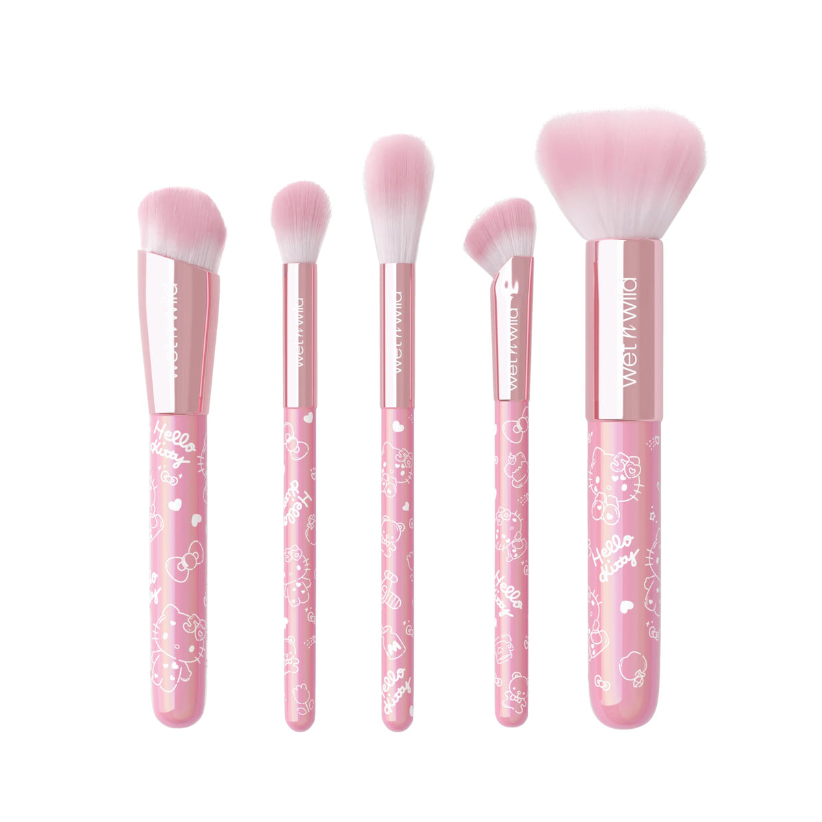 wet n wild Hello Kitty 5-Piece Makeup Brush Set, Buildable & Blendable Multifunctional Seamless Application, Cruelty-Free & Vegan Feathery Soft Bristles