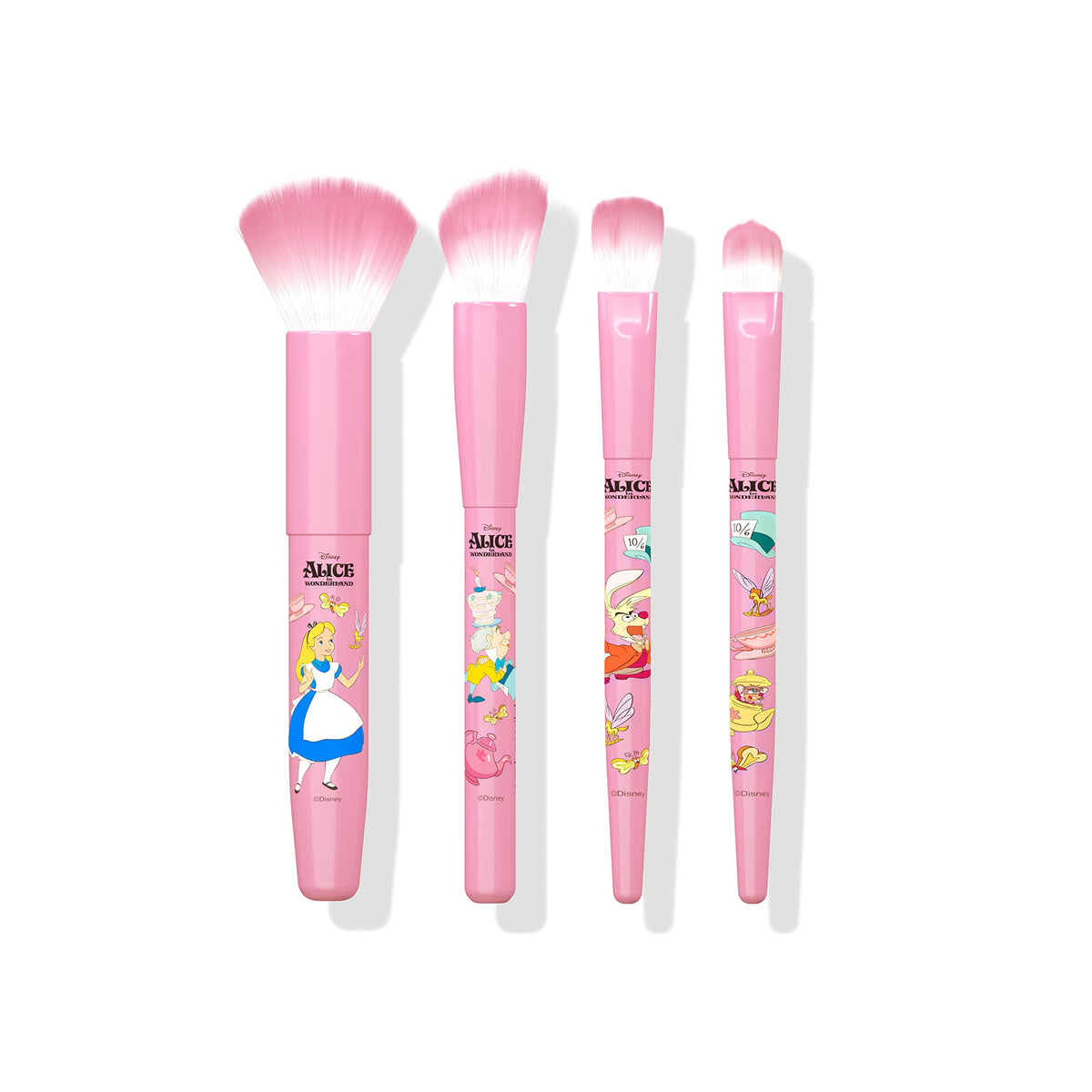 The Mad Tea Party 4-Piece Makeup Brush Set includes 4 ultra-soft vegan brushes in an enchanting packaging, perfect for your makeup collection.