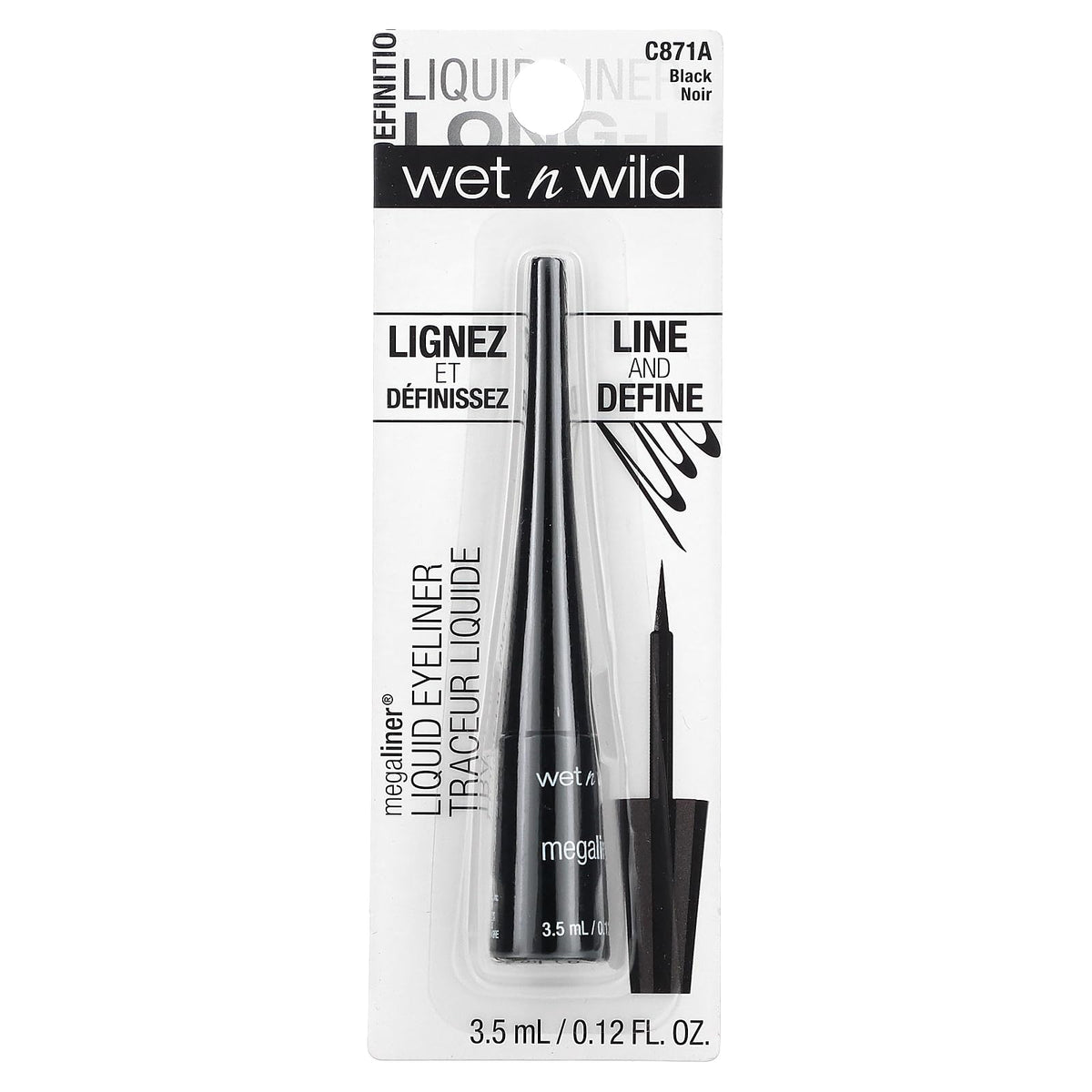 Define your eyes with wet n wild MegaLiner Liquid Eyeliner in Black. This packaging includes a precise applicator for bold and long-lasting lines that enhance your eye makeup look.