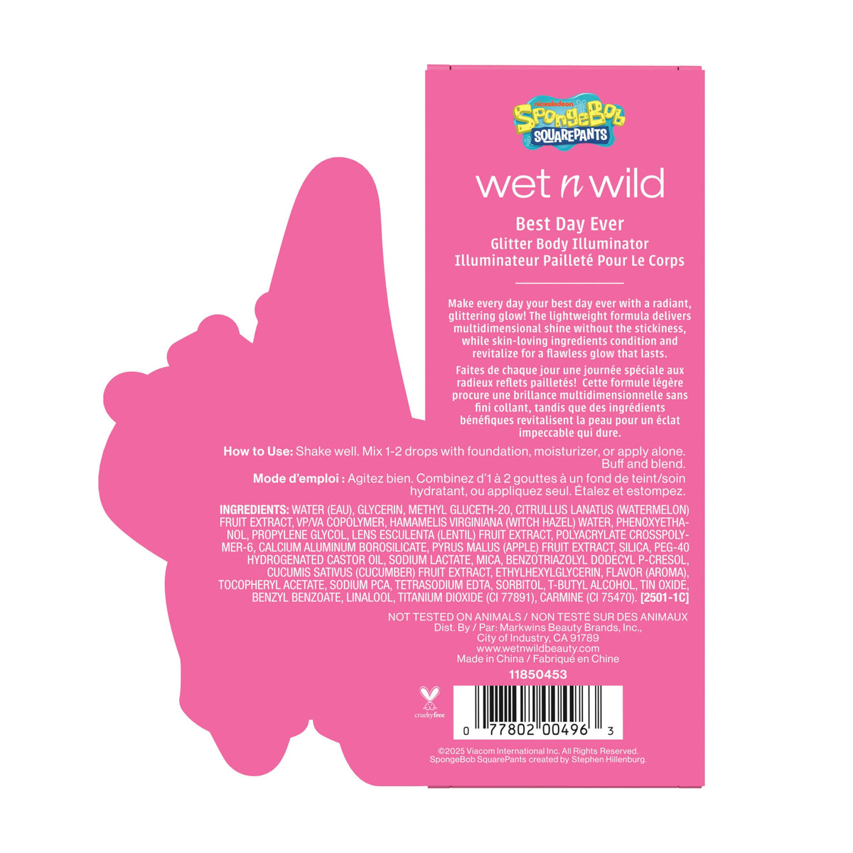 wet n wild Spongebob Best Day Ever Glitter Body Illuminator, Lightweight Non-Sticky Radiant Glow, Blendable Hydrating Formula