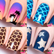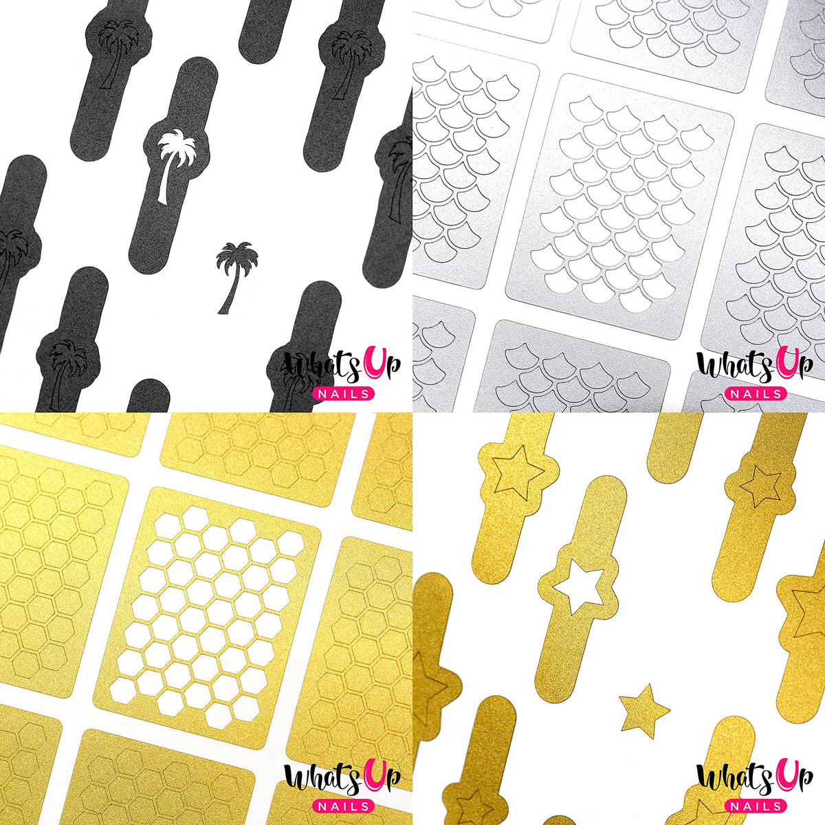 Whats Up Nails - Nail Vinyl Stencils Variety Pack 4pcs (Palm, Scales, Honeycomb, Northern Star) for Nail Art Design