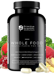 Primitive Scientific Whole Food Multivitamin for Men, Natural & Sugar-Free Formula for Strength, Energy, Immune Support, and More (120 Vegetarian Capsules)