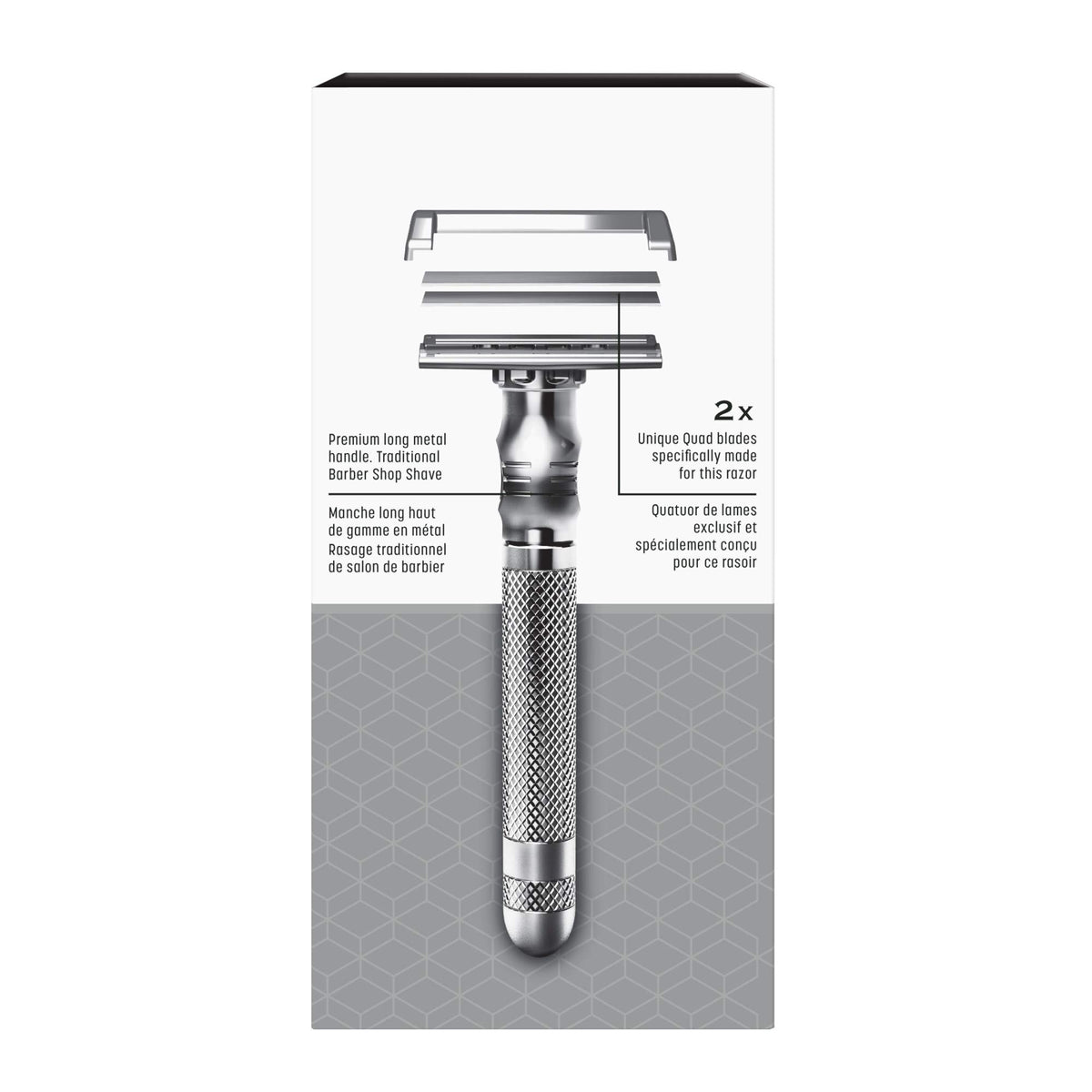 Directions :: Get a classic barbershop vintage shave experience with superior safety and comfort by using the stainless steel blades for an incredibly close and comfortable shave.
