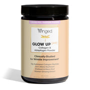 Enhance your skin's radiance with Winged Wellness Glow Up AM Collagen Powder. This morning beauty supplement contains Grass-Fed Hydrolyzed Collagen Peptides, Lion's Mane, and Maca Root for glowing skin.
