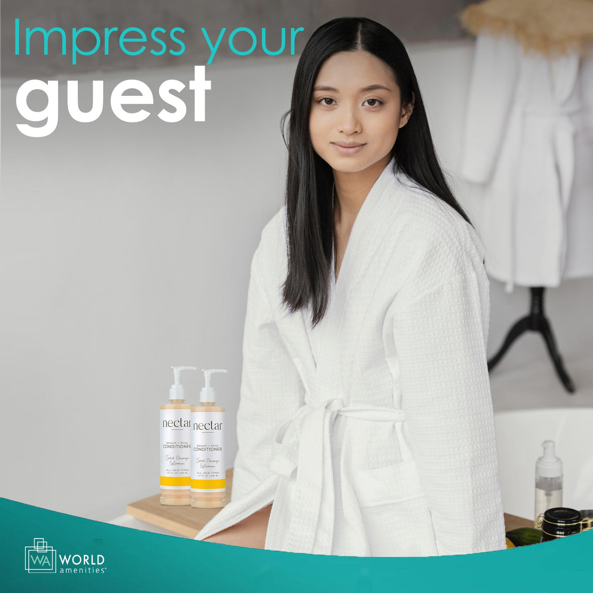 World Amenities Nectar Pump Bottle Hair Conditioner is a luxurious moisturizing and detangling conditioner that transforms your hair care routine. Infused with nourishing ingredients, it leaves your hair silky smooth and manageable.