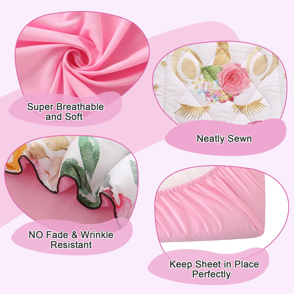 | included components | Unicorn Comforter, Pink Flat Sheet, Fitted Sheet, Pillowcase |