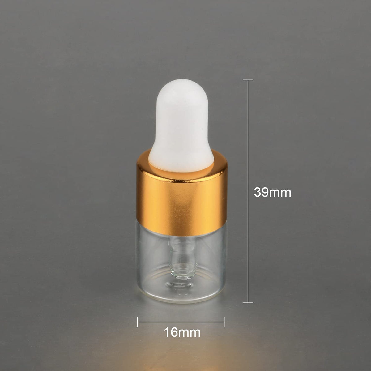 Wresty 50 Pcs Clear Glass Dropper Vails 1ml Mini Essential Oils Sample Dropper Bottles For Traveling Essential Oils Perfume Cosmetic Liquid,With 2 pcs dropper