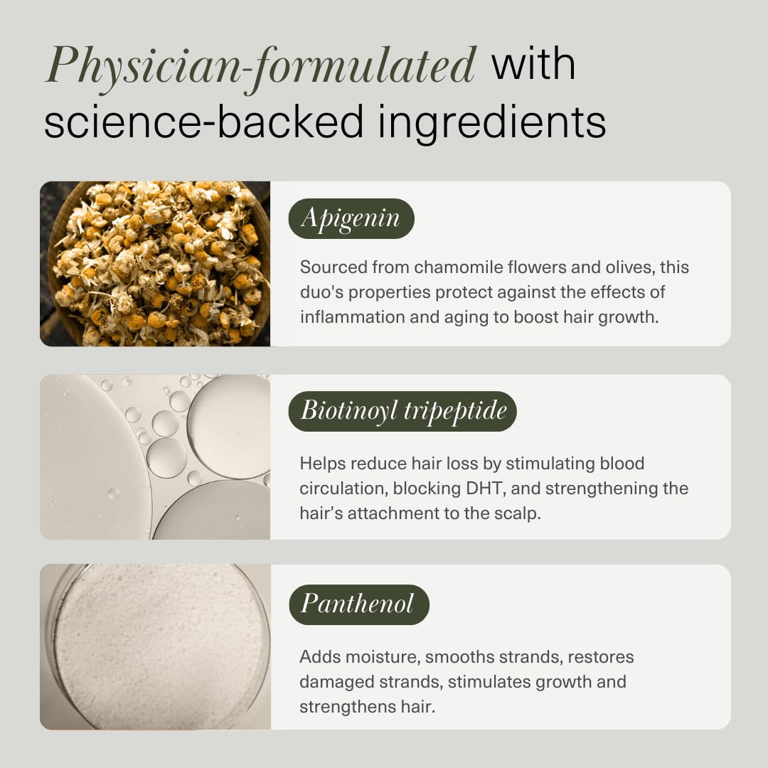 Active Ingredients :: Biotinoyl tripeptide-1, Panthenol, Apigenin, Vitamin E, White nettle flower, Ginseng, Honey locust seed