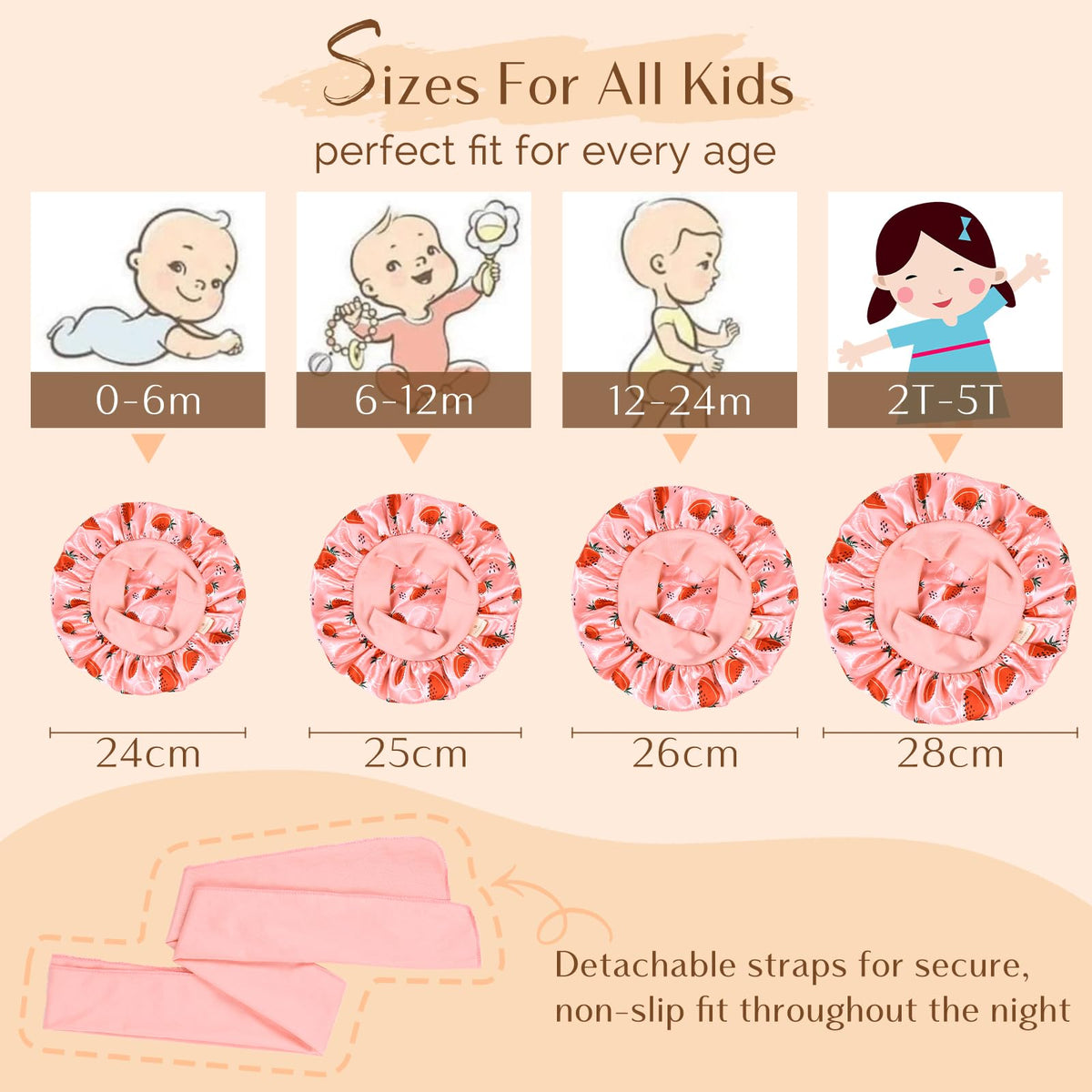 YANIBEST 2 Pcs Baby Satin Bonnet for Sleeping Kids Double Layer Sleeping Caps for Toddler Silk Bonnet Elastic Wide Band