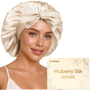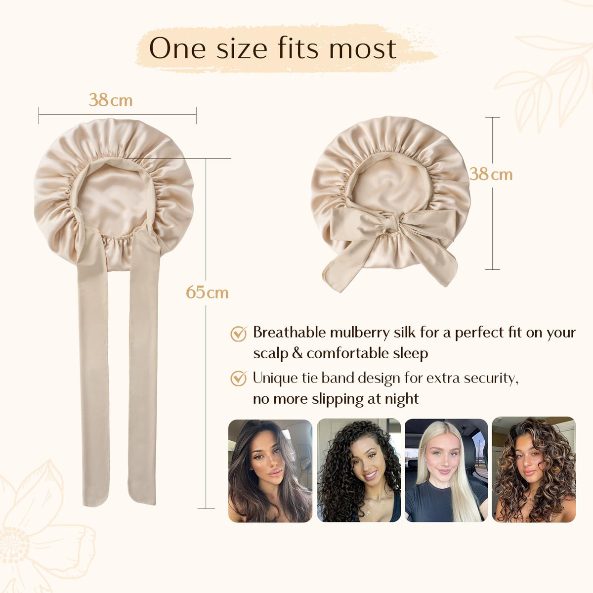 Yanibest 22 Momme 100% Mulberry Silk Bonnet for Sleeping Women Double Layer Sleep Bonnet with Tie for Long Curly Hair,Silk Sleep Cap