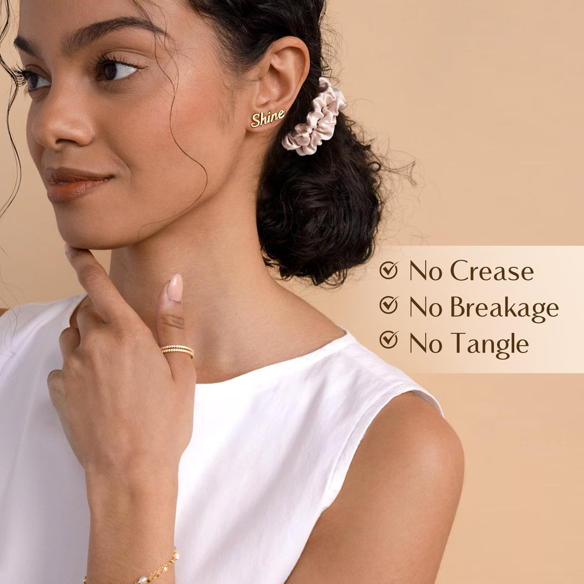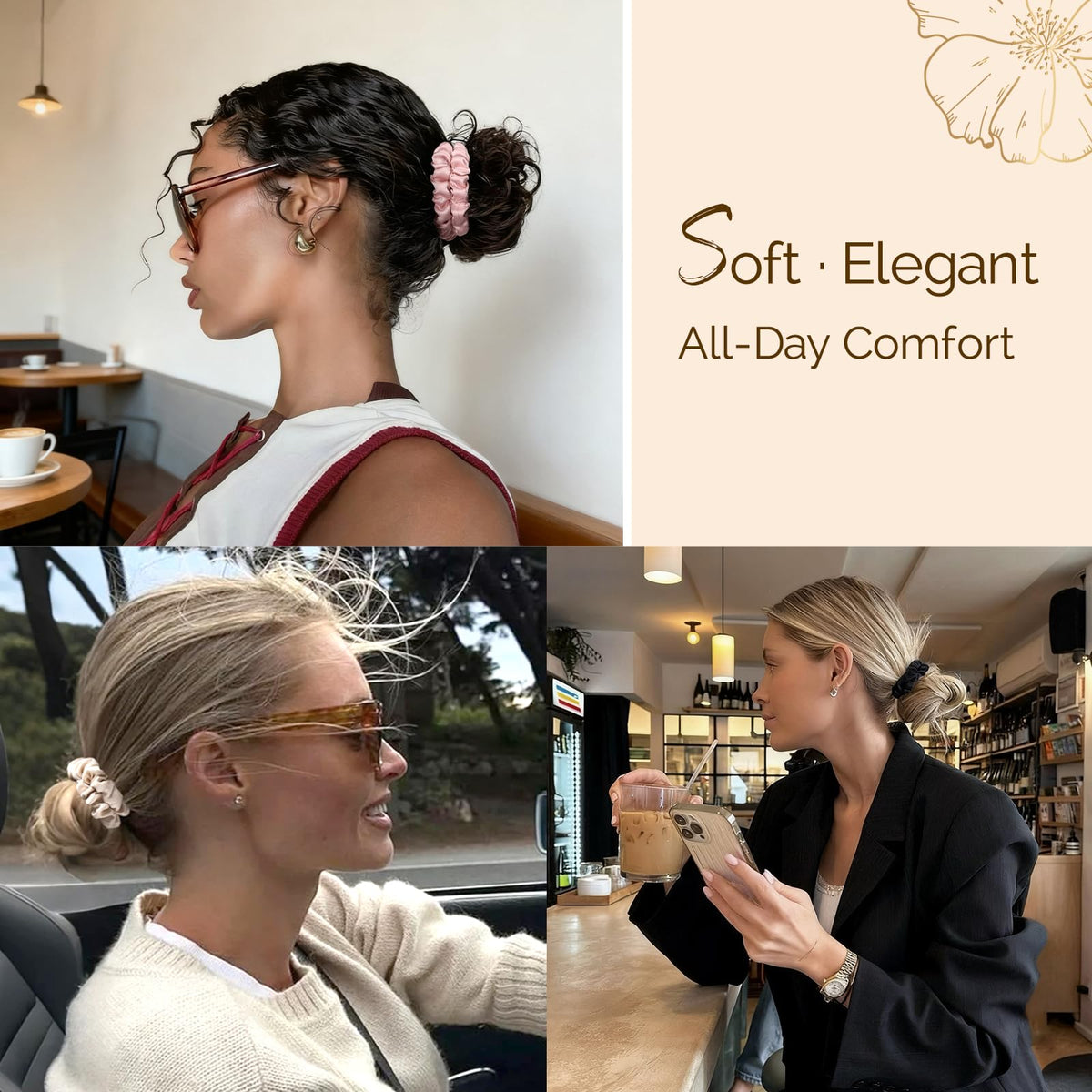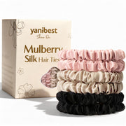 Yanibest 6 pcs 100% Pure Mulberry Silk Scrunchies Non Slip Scrunchies No Damage Silk Hair Ties for Women and Girls, Black Champagne Pink