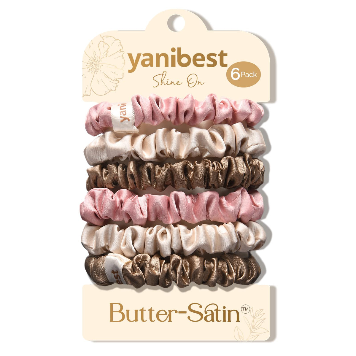 Yanibest 6 Pcs Silk Hair Ties - Satin Scrunchies for Women, Thin Hair Ties, Ponytail Holders Hair Care No Damage