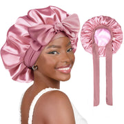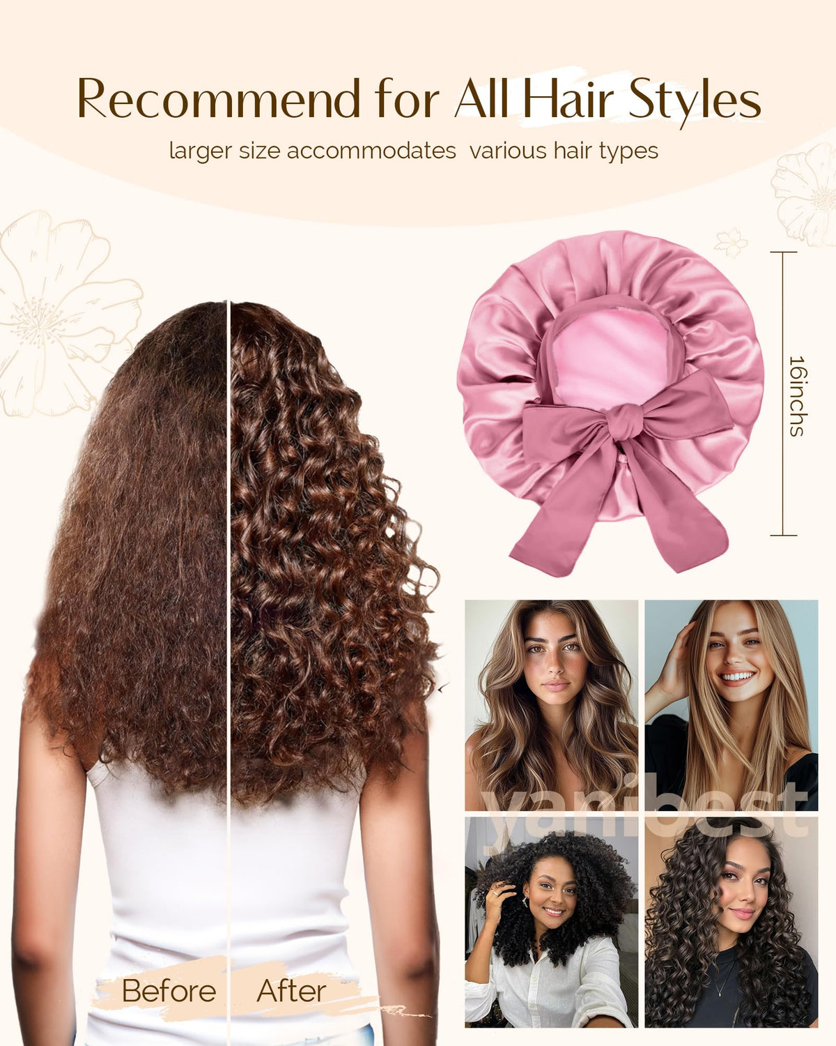 Yanibest Adjustable Satin Bonnet for Sleeping, Double Layer Silk Hair Bonnet with Tie Band for Unisex Women Men Curly Natural