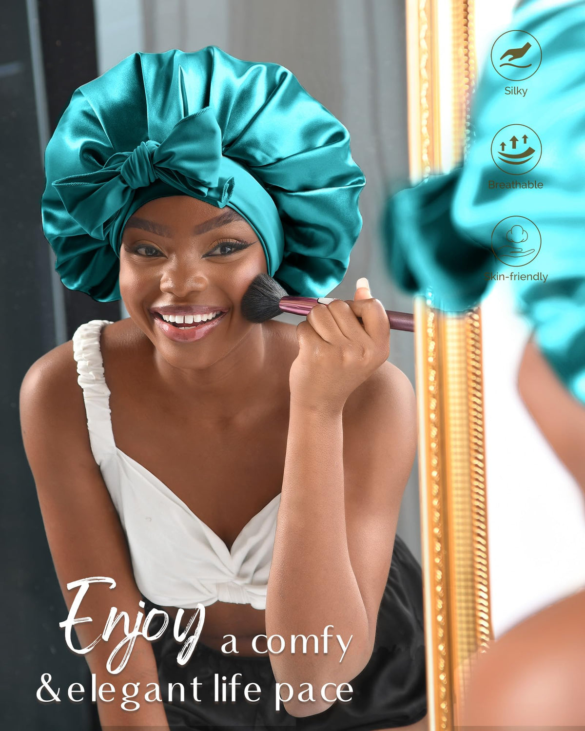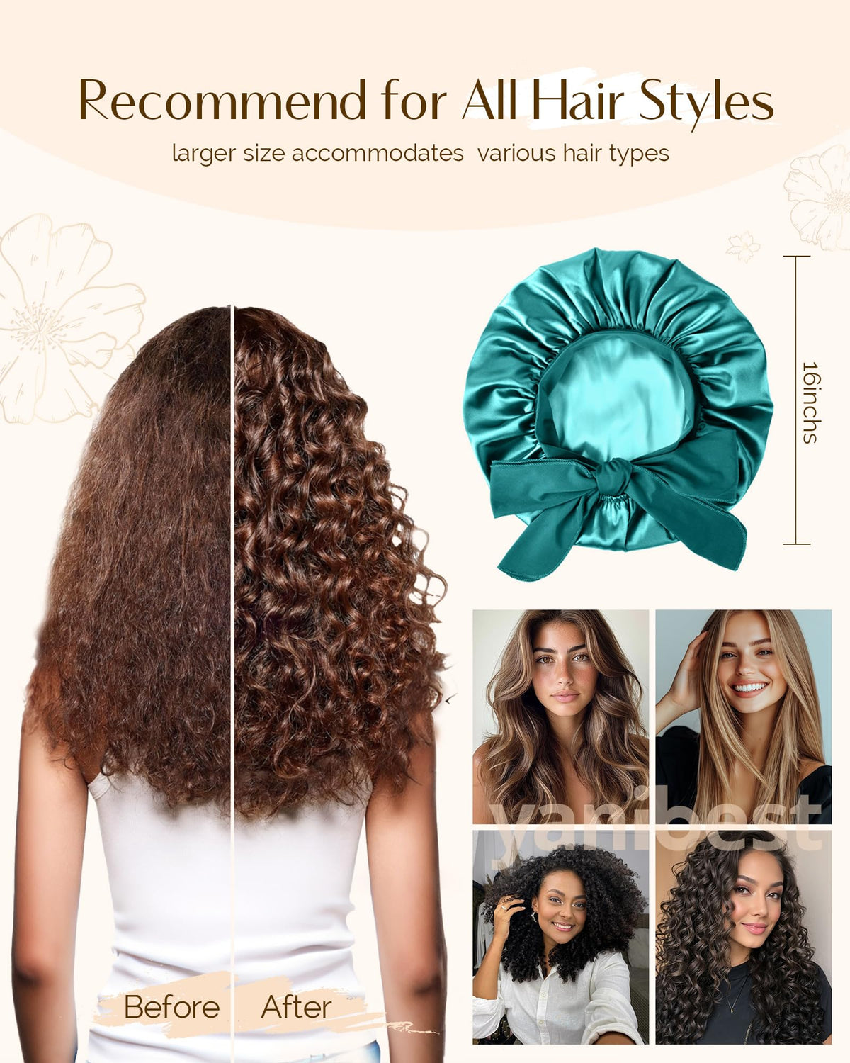 Yanibest Adjustable Satin Bonnet for Sleeping, Double Layer Silk Hair Bonnet with Tie Band for Unisex Women Men Curly Natural