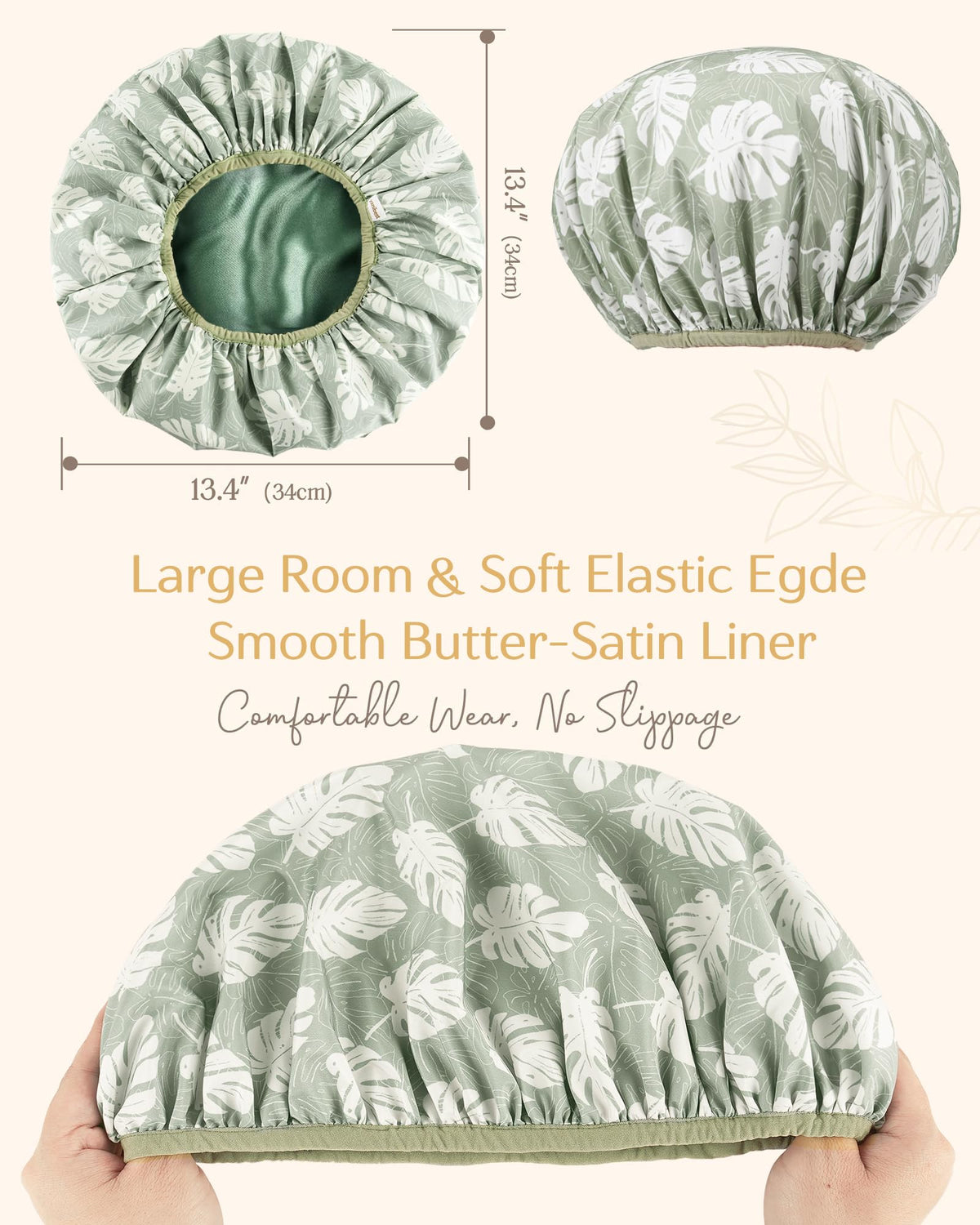 - Durable and Comfortable Shower Hair Cap can maximally seal moisture in your low or high porosity hair and help to get shiny hair; The satin lined hair cover for shower protects your pillows from moisturizing oil and keeps your bed neat and clean