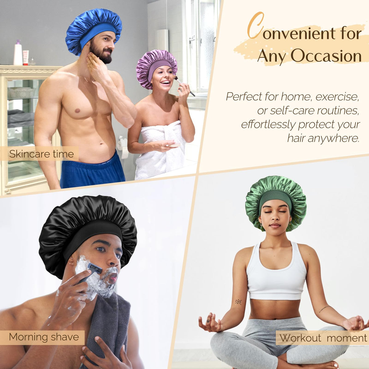 YANIBEST Silk Bonnet for Men, Satin Hair Bonnet for Sleeping, Double Layer Sleep Cap for Black Men & Women Curly Hair Braids, Black