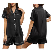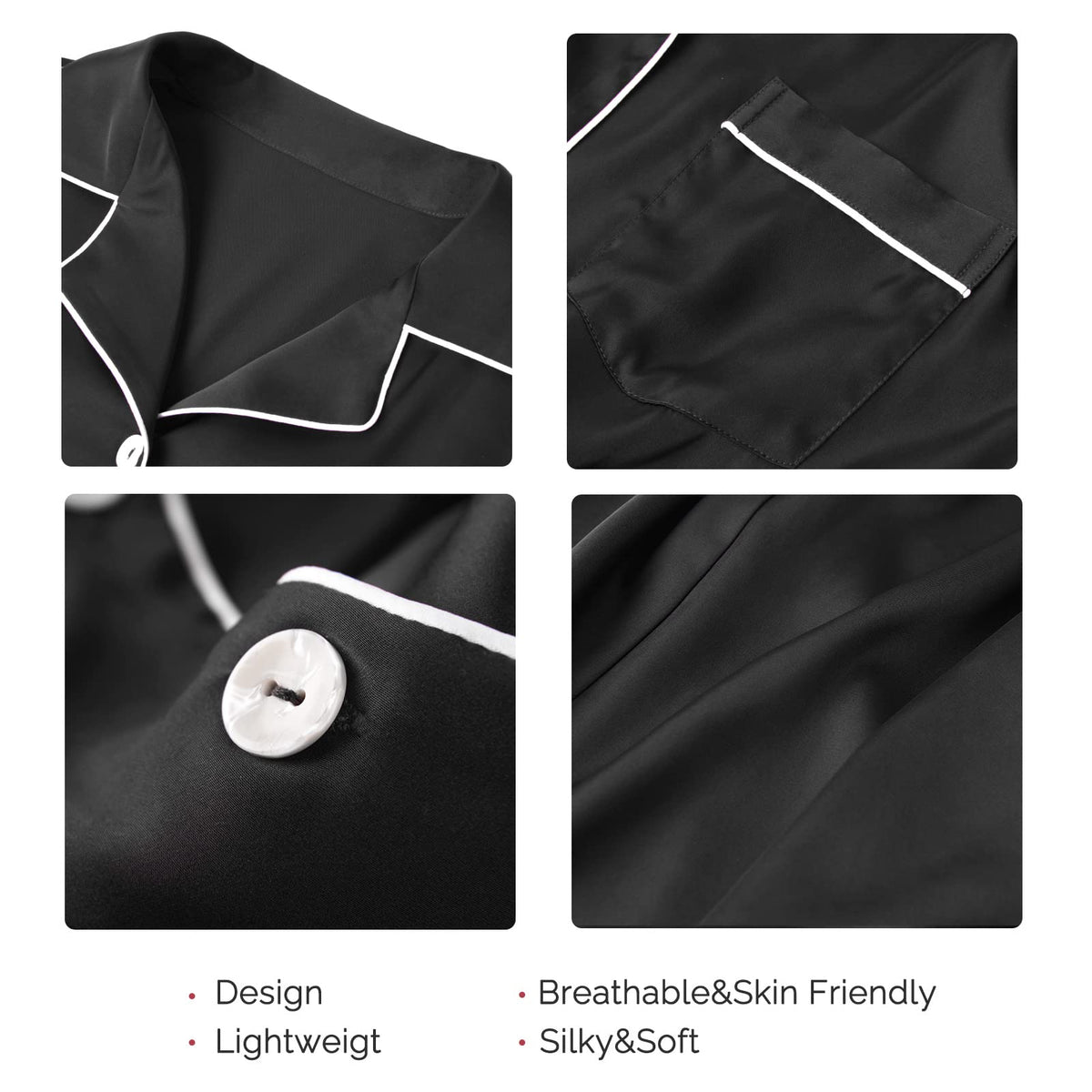 YANIBEST Womens Silk Satin Pajamas Set Short Sleeve Two-piece Pj Sets Sleepwear Loungewear Button-Down Pj Sets