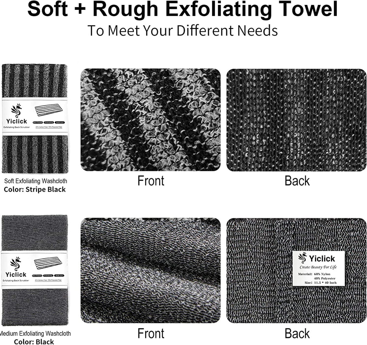 Yiclick Exfoliating Body Scrubber, Back Scrubber for Shower Bath, Japanese Scrub Wash Cloth, Exfoliating Washcloth Towel for Men Women, Body Exfoliator Loofah Luffa Sponge Net Rag Back Washer (Black)