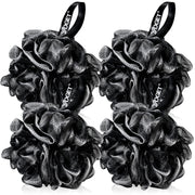 Yoget Bath Loofah Sponge, 4 Pack Black 60G Shower Mesh Ball Soft Pouf Body Scrubber, Exfoliate, Cleanse, Soothe Skin, Black Loofah with White Trim