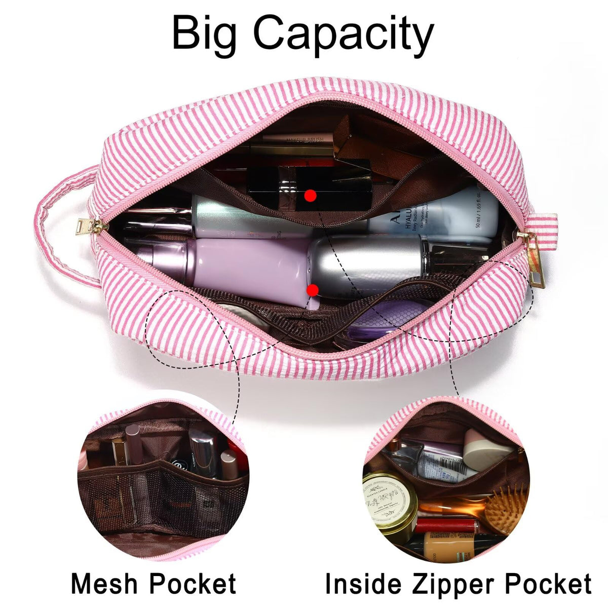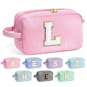 YOOLIFE Initial Makeup Bag for Women - Cute Pink Toiletry Bags Cosmetic Pouch for Teen Girls, Personalized Birthday Gifts for Women Friends Sister Daughter, Letter L