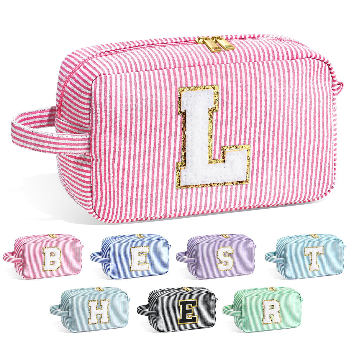 YOOLIFE Initial Makeup Bag for Women is a cute pink toiletry bag personalized with the letter 'L', making it a perfect birthday gift for women, friends, sisters, or daughters who appreciate stylish and practical accessories.