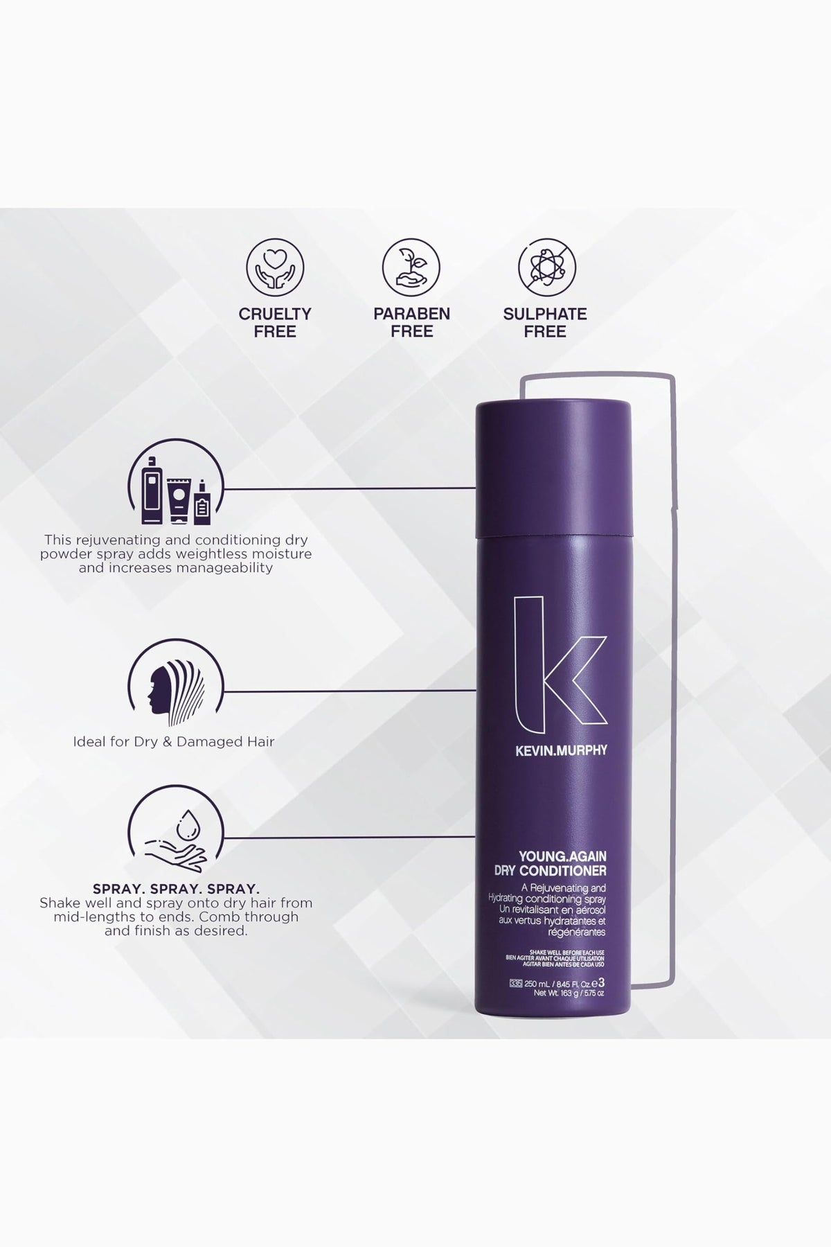 YOUNG.AGAIN 250 ML is a rejuvenating hair treatment that restores youthfulness and vitality to your hair, leaving it soft, shiny, and manageable.