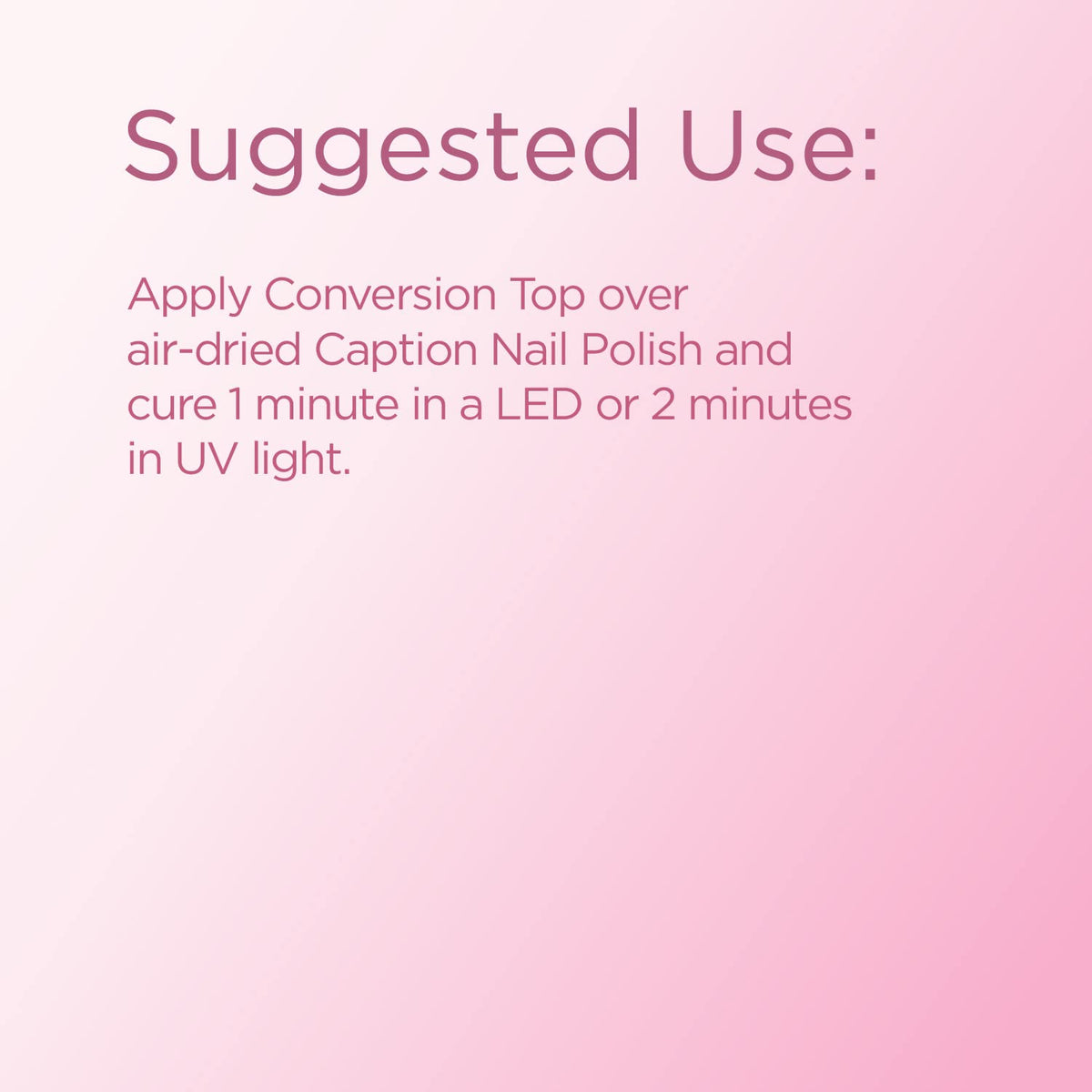 Specific Uses For Product :: Apply Conversion Top over air-dried Caption Nail Polish and cure 1 minute in a LED or 2 minutes in UV light.