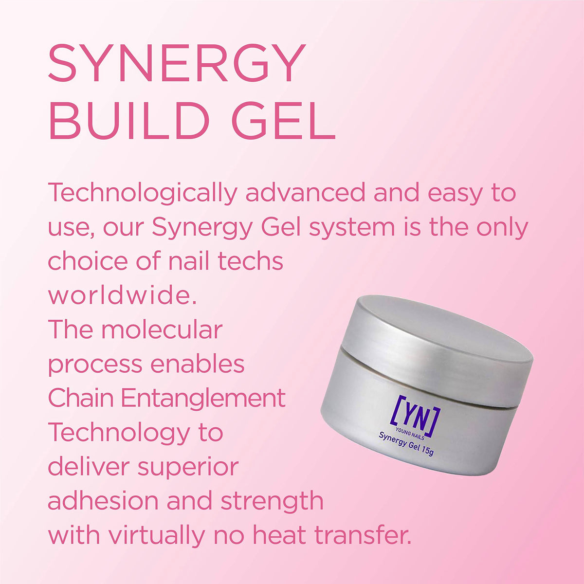 Short Product Description :: Technologically advanced and easy to use, our Synergy Gel system is the only choice for nail techs worldwide. The molecular process enables Chain Entanglement Technology to deliver superior adhesion and strength with virtually no heat transfer.