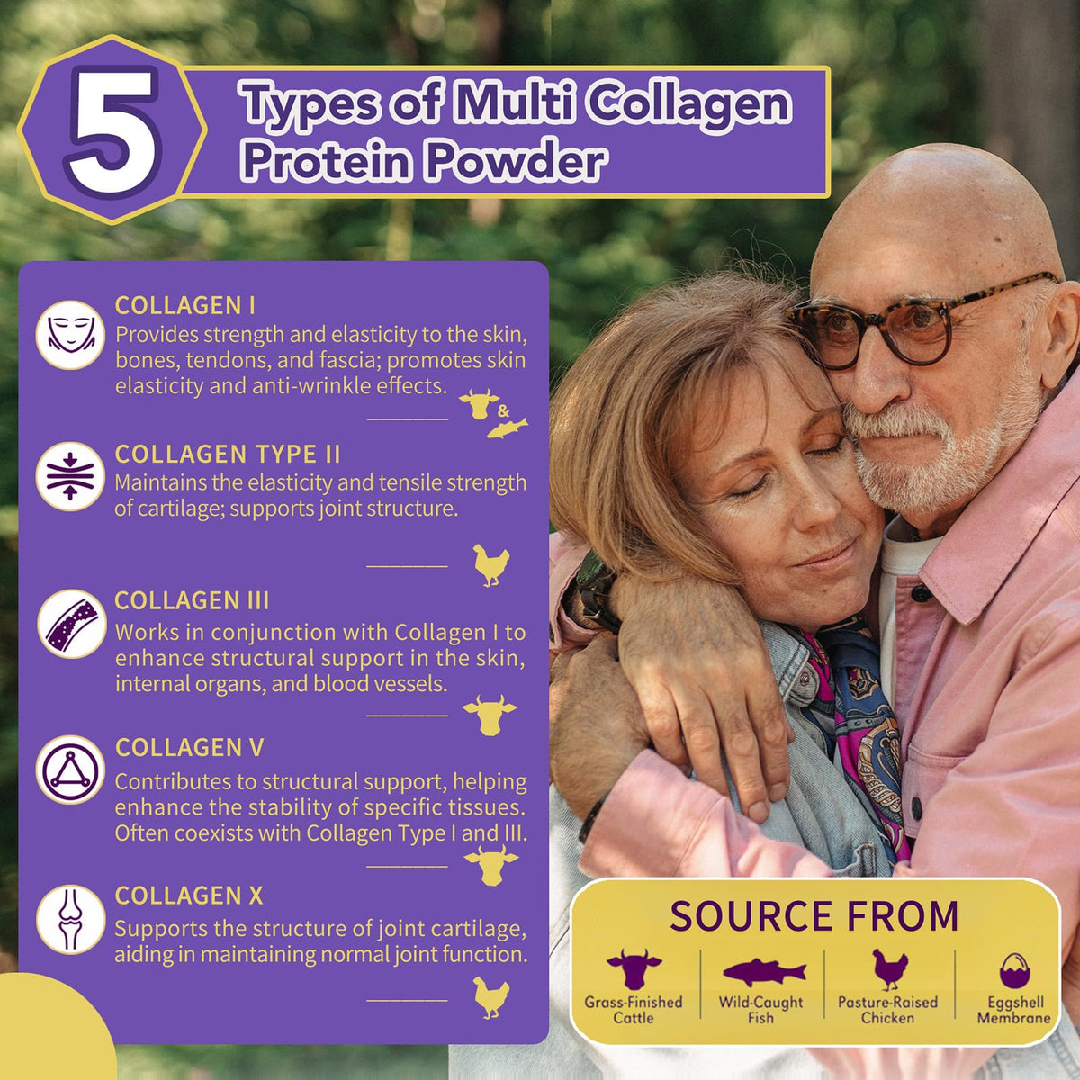 Zammex Multi Collagen Peptides, 5 Types of Hydrolyzed Collagen Unflavored Protein Powder, 60 Serving, Premium Grass-Fed Beef, Chicken, Wild Fish, Eggshell, Keto & Paleo Friendly, Easy Mix