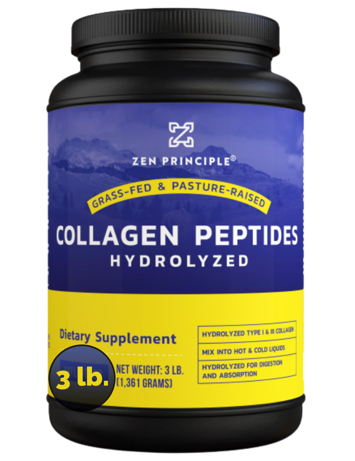 Zen Principle Grass-Fed Collagen Peptides 3 lb. Custom Anti-Aging Hydrolyzed Protein Powder for Healthy Hair, Skin, Joints & Nails. Paleo and Keto Friendly, GMO and Gluten Free, Pasture-Raised Bovine.