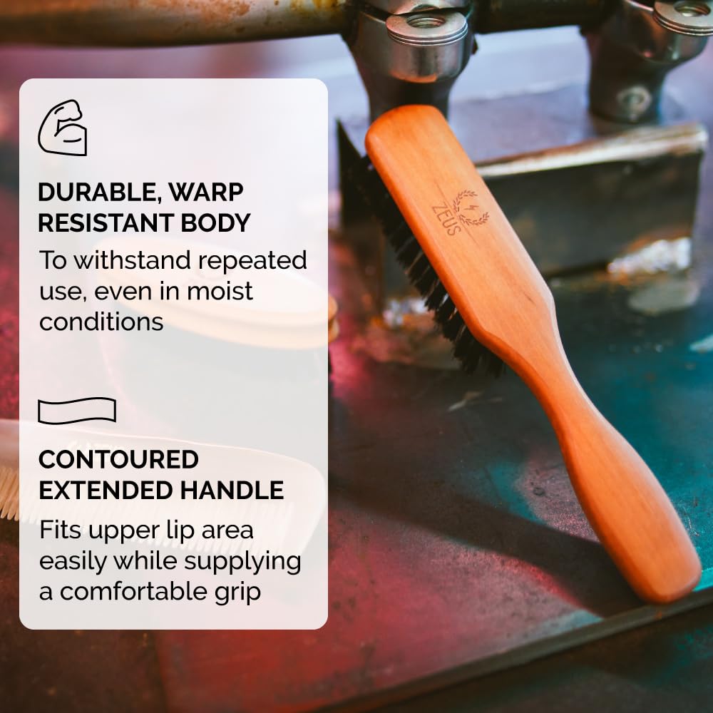ZEUS Boar Bristle Beard & Mustache Handled Brush for Men, Soft Bristles, Travel Beard Care Brush with Handle (Made in Germany) J92