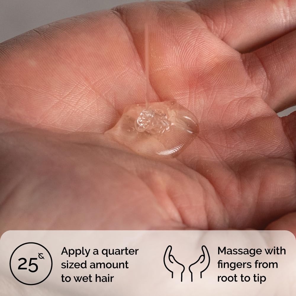 Apply shampoo to wet hair, lather, rinse, and repeat if necessary. Apply conditioner to wet hair, leave in for a short period, then rinse out.