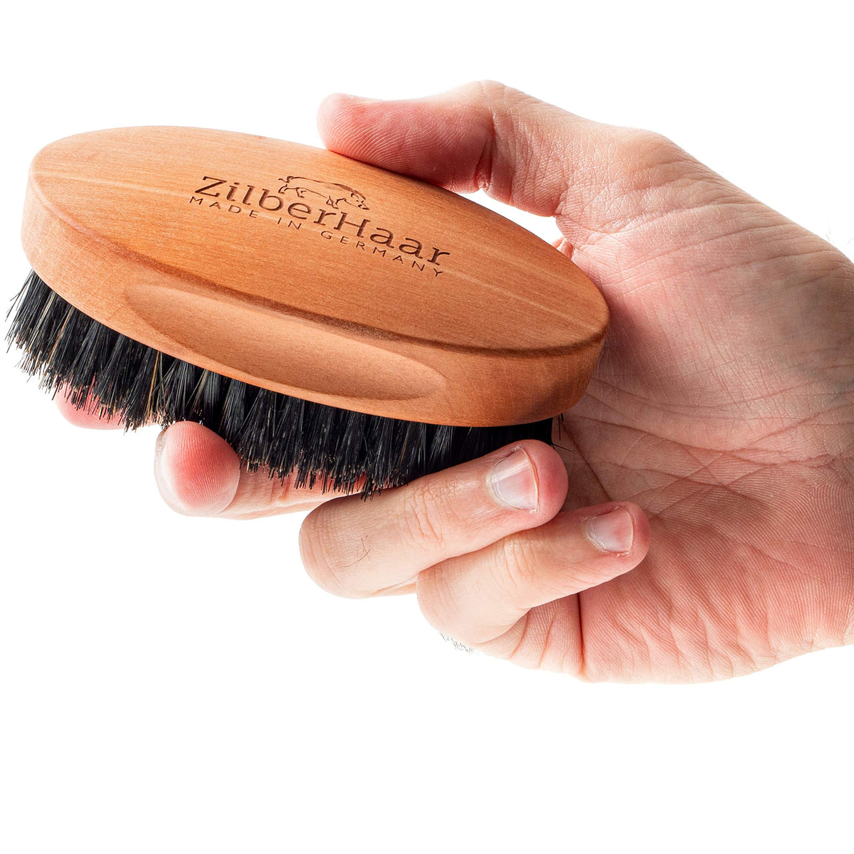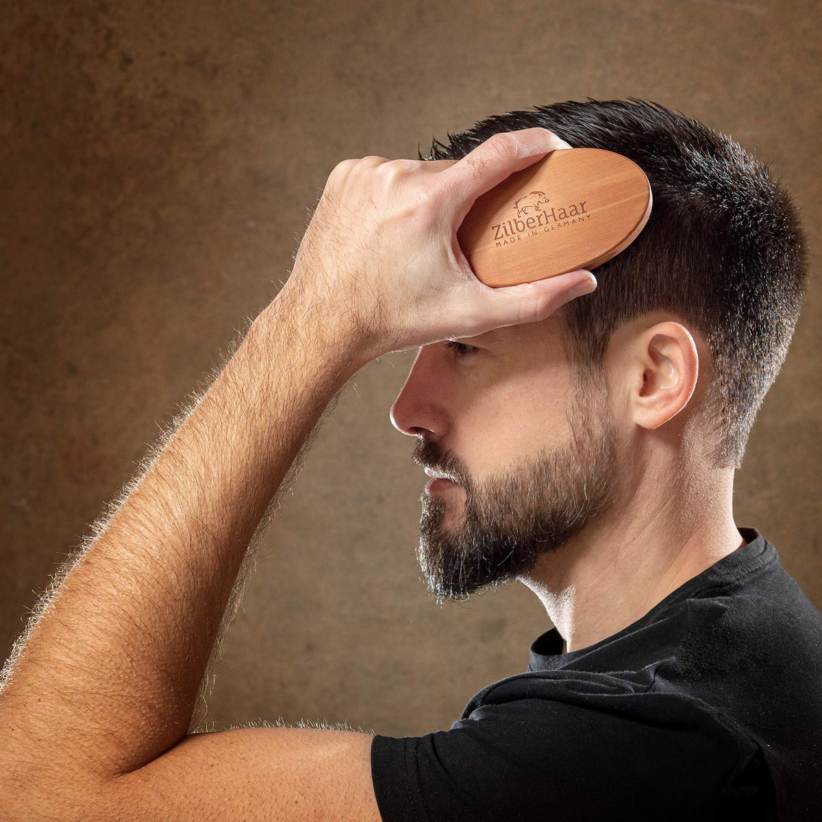 ZilberHaar - Men's Slanted Bristle Hair and Beard Brush - Natural Boar and Pearwood Military Style