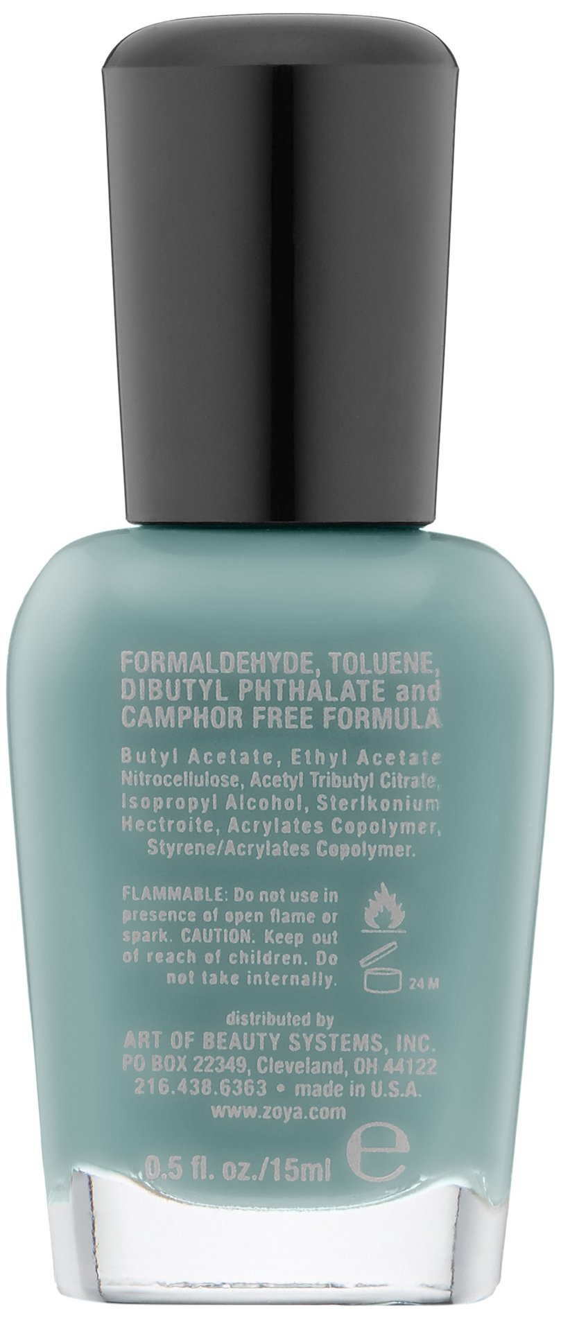Short Product Description :: Bevin by Zoya can be best described as a dusty, medium sage green with teal tones and a creamy opaque finish. A stylish and unique shade for when you want something different from the usual mint green.