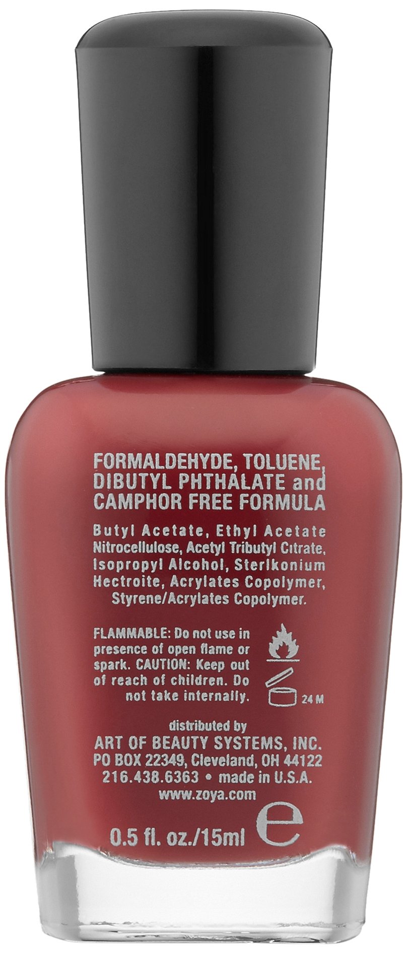 Ingredients: Butyl Acetate, Ethyl Acetate, Nitrocellulose, Acetyl Tributyl Citrate, Isopropyl Alcohol, Sterikonium Hectroite, Acrylates Copolymer, StyreneAcrylates Copolymer.